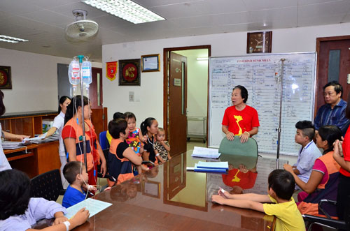 Phó Viện trưởng Tạ Ngọc Hải chia sẻ những khó khăn và thiệt thòi với gia đình các bệnh nhi.