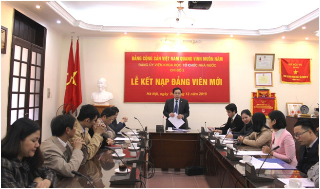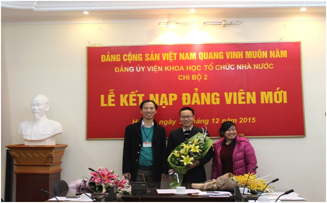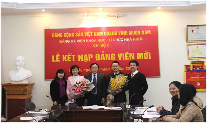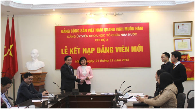Chiều ngày 31/12/2015, tại Hội trường Viện Khoa học tổ chức nhà nước, Chi bộ 2 thuộc Đảng bộ Viện Khoa học tổ chức nhà nước đã tổ chức buổi Lễ kết nạp Đảng viên cho 2 quần chúng ưu tú là đồng chí Phạm Huyền Trang (Trung tâm Thông tin và Thư viện khoa học) và đồng chí Hồ Anh Tuấn (Phòng Kế hoạch Tài chính).