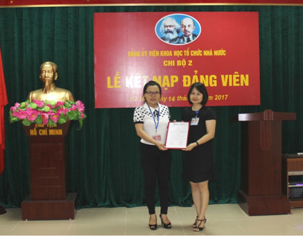 Ngày 14/6/2017, tại Hội trường Đảng ủy Bộ Nội vụ, Chi bộ 2, Đảng bộ Viện Khoa học tổ chức nhà nước đã tổ chức buổi Lễ kết nạp Đảng viên cho quần chúng Lê Thị Kim Liên.