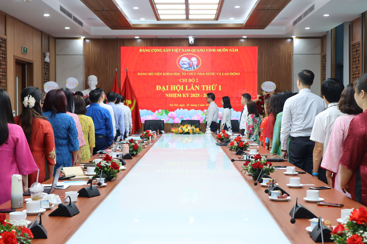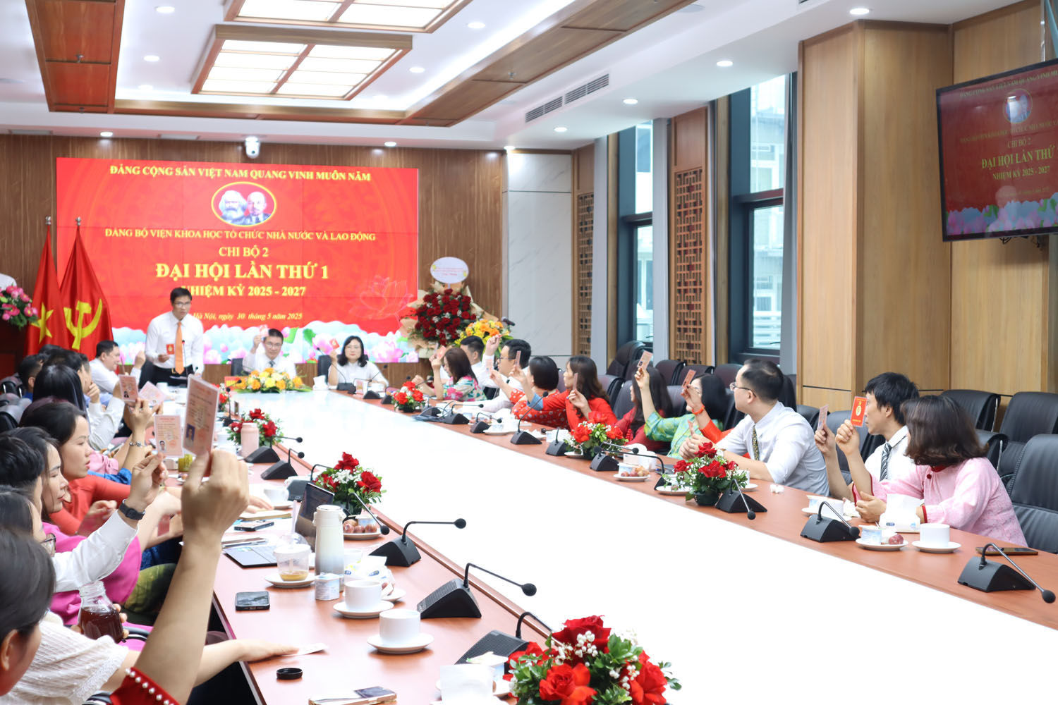Ngày 30/5/2025, Chi bộ 2 thuộc Đảng bộ Viện Khoa học Tổ chức nhà nước và Lao động (Viện KHTCNN&LĐ) đã long trọng tổ chức Đại hội Chi bộ lần thứ I nhiệm kỳ 2025-2027. Tham dự Đại hội có đồng chí Lê Anh Tuấn – Ủy viên BCH Đảng bộ Bộ Nội vụ - Bí thư Đảng ủy - Viện trưởng Viện KHTCNN&LĐ, các đồng chí ủy viên BCH Đảng bộ Viện; các đồng chí đại diện Chi ủy của các Chi bộ trực thuộc Đảng bộ Viện, đại diện BCH Công đoàn; Đoàn Thanh niên Viện KHTCNN&LĐ cùng 26/27 đảng viên Chi bộ 2.
