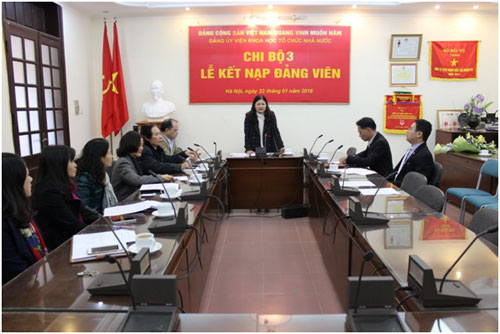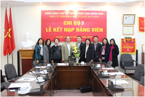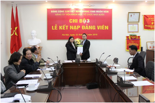 Chiều ngày 22/01/2016, tại Hội trường Viện Khoa học tổ chức nhà nước, Chi bộ 3 thuộc Đảng bộ Viện Khoa học tổ chức nhà nước đã long trọng tổ chức buổi lễ kết nạp Đảng viên đối với quần chúng ưu tú Phan Đăng Sơn – Nghiên cứu viên Trung tâm Nghiên cứu hội, Tổ chức phi chính phủ và Đào tạo.