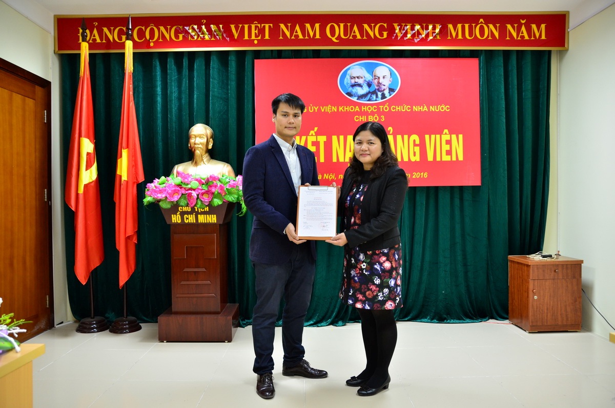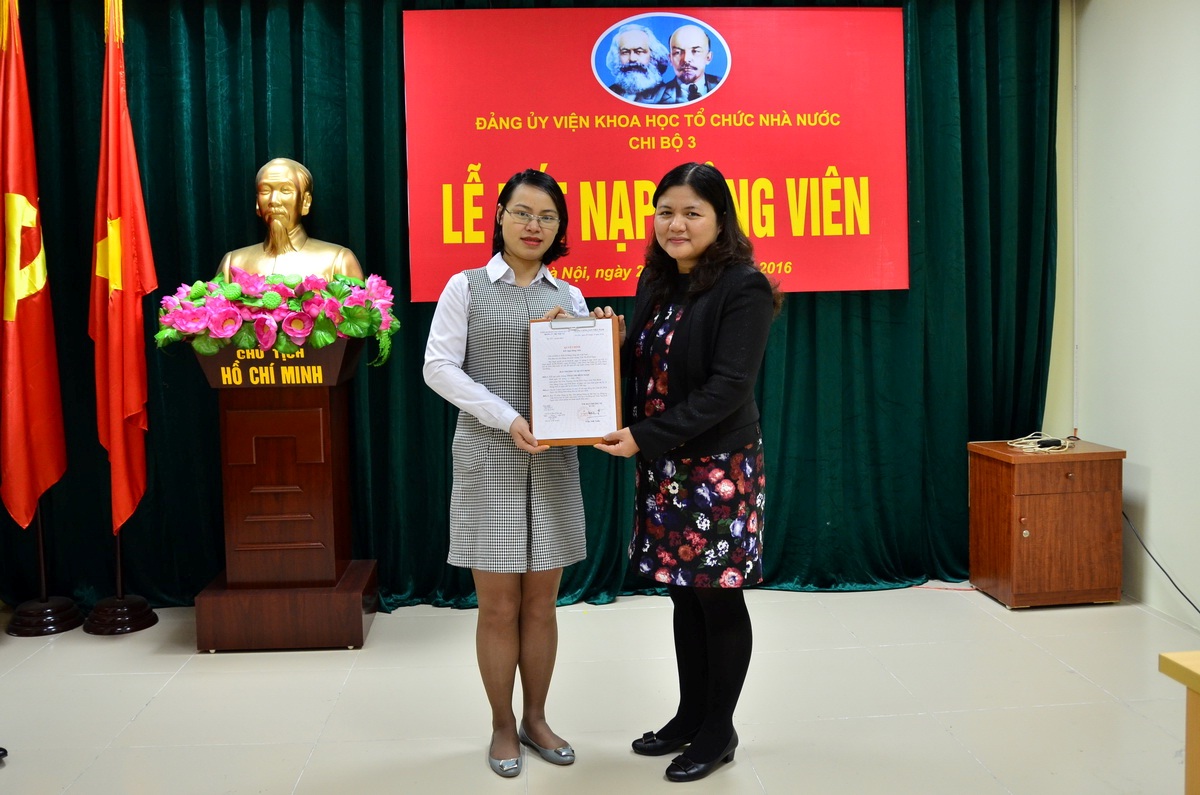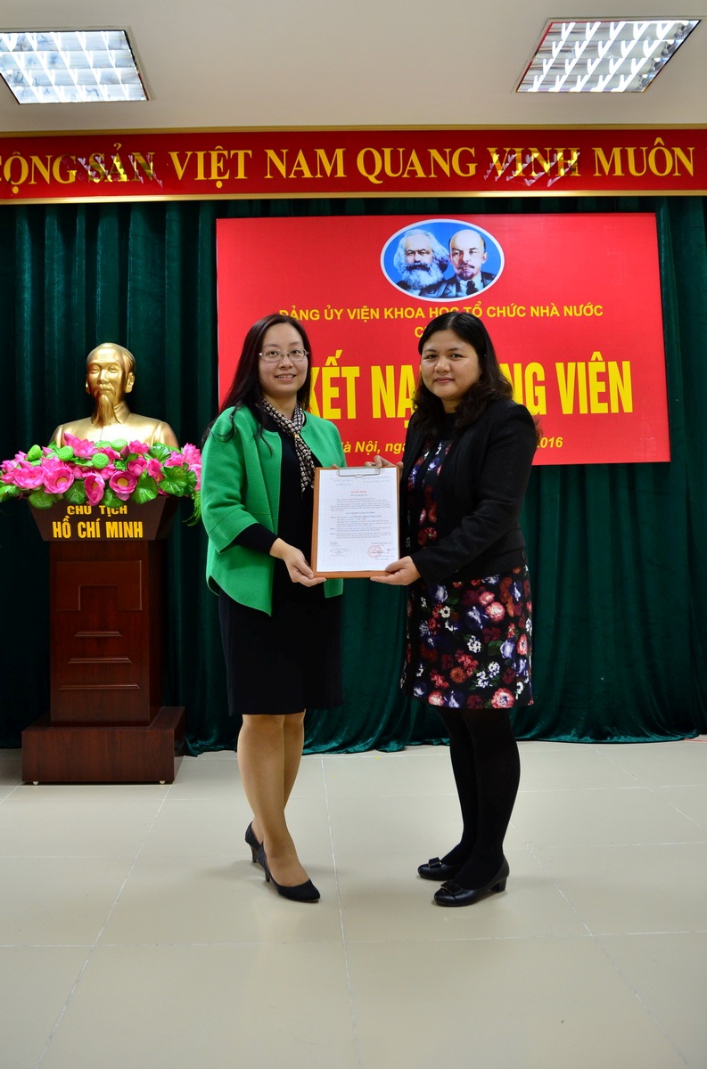 Được sự đồng ý của Đảng ủy Viện khoa học tổ chức nhà nước, ngày 27 tháng 12 năm 2016, Chi bộ 3 tiến hành tổ chức Lễ kết nạp đảng viên mới cho 03 quần chúng ưu tú: Nguyễn Thị Quỳnh Giang, Trần Thị Bích Ngọc, Trịnh Ngọc Linh.