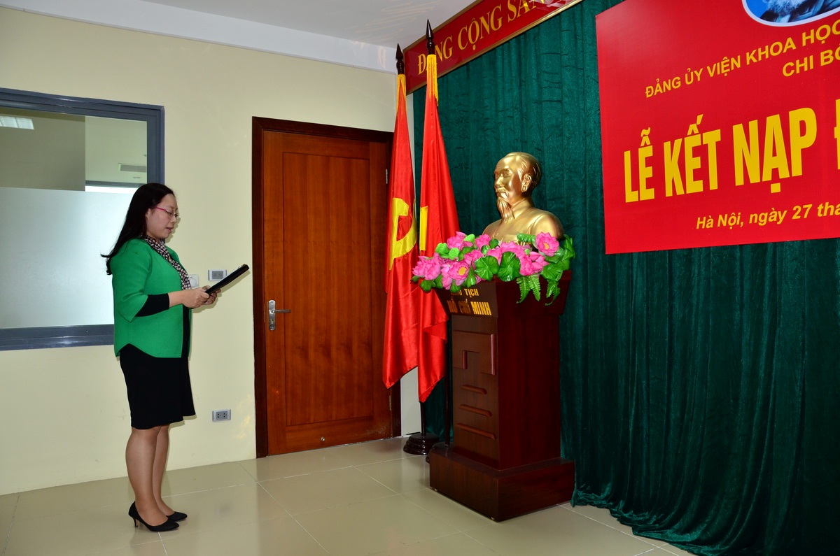 Lễ kết nạp diễn ra trong không khí trang nghiêm và theo đúng trình tự, thủ tục được quy định tại Điều lệ Đảng. Tại buổi lễ, đồng chí Nguyễn Huyền Hạnh - Bí thư Chi bộ đọc Quyết định kết nạp đảng viên cho quần chúng ưu tú, giao nhiệm vụ và căn dặn đảng viên mới, đồng thời phân công các đồng chí đảng viên chính thức trong chi bộ tiếp tục giúp đỡ, dìu dắt đồng chí đảng viên mới trong thời gian thử thách 12 tháng.