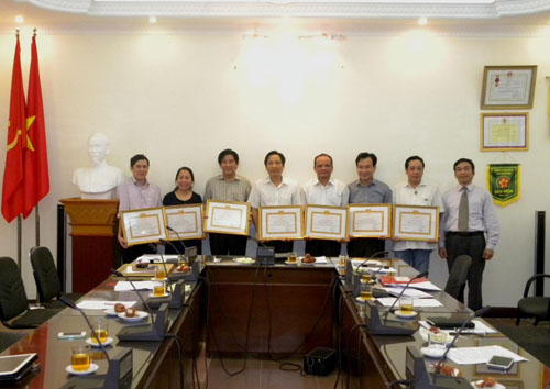 Nội dung cuối cùng của buổi họp là công tác khen thưởng. Chi bộ đã công bố Quyết định và trao Bằng khen đối với đảng viên đủ tư cách, hoàn thành xuất sắc nhiệm vụ 5 năm liền 2005-2010 cho đồng chí Văn Tất Thu, Thứ trưởng Bộ Nội vụ; Quyết định tặng Bằng khen Chi bộ Viện KHTCNN là 1 trong 5 tổ chức cơ sở Đảng trong sạch, vững mạnh tiêu biểu của Đảng bộ Bộ Nội vụ và khen thưởng các đảng viên của Chi bộ Viện đạt tiêu chuẩn hoàn thành xuất sắc nhiệm vụ năm 2012. Đồng chí Mai Thanh Bình, Phó Bí thư thường trực Đảng ủy Bộ Nội vụ, thay mặt Đảng ủy cấp trên, trao tặng Bằng khen và chúc mừng những kết quả mà tập thể Chi bộ Viện KHTCNN và các đảng viên đã đạt được trong thời gian qua; đồng chí mong rằng Chi bộ Viện KHTCNN tiếp tục phấn đấu hơn nữa để triển khai thành công các nhiệm vụ của Đảng ủy cơ quan Bộ Nội vụ giao trong thời gian tới.