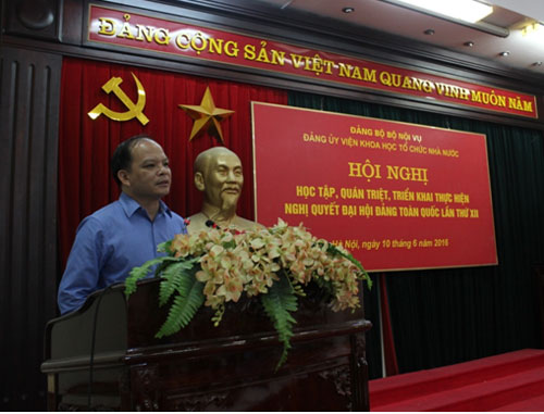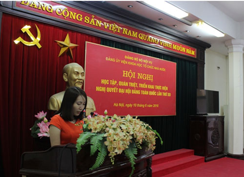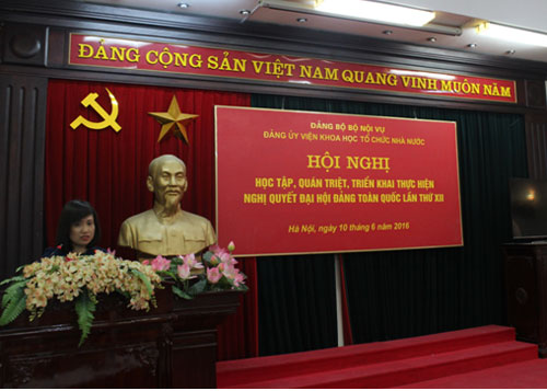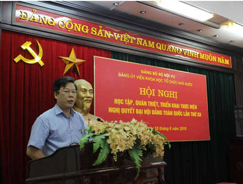 Ngày 10/06/2016, tại trụ sở 37A Nguyễn Bỉnh Khiêm, Đảng ủy Viện Khoa học tổ chức nhà nước (Đảng ủy Viện) tổ chức Hội nghị học tập, quán triệt, triển khai thực hiện Nghị quyết Đại hội Đảng toàn quốc lần thứ XII và sinh hoạt chuyên đề về Nghị quyết Đại hội XII của Đảng bộ Khối các cơ quan Trung ương