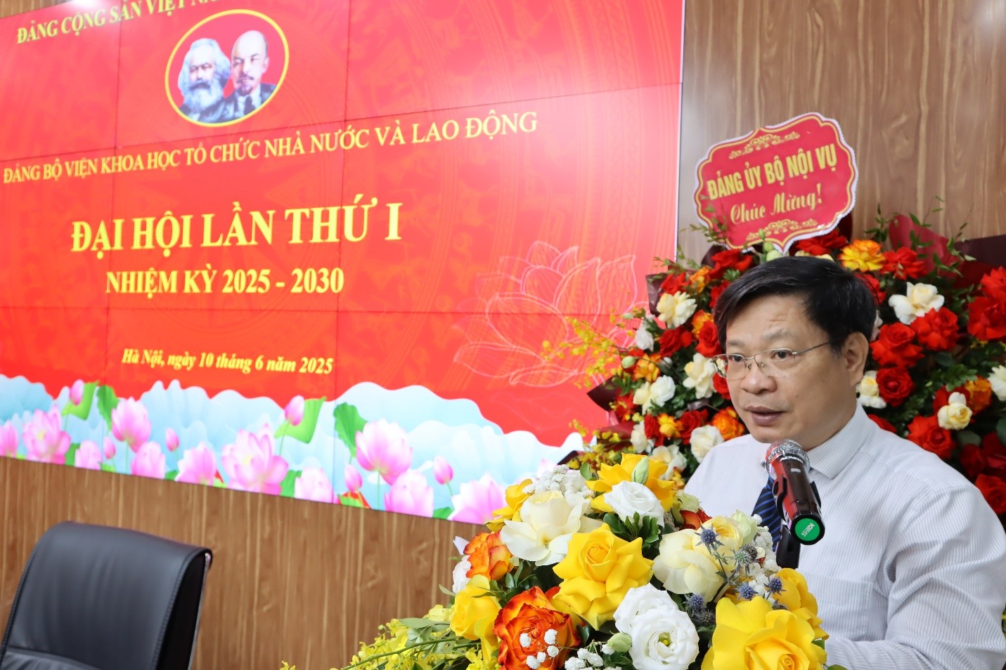 Phát biểu chỉ đạo tại Đại hội, thay mặt Ban Thường vụ Đảng ủy Bộ, đồng chí Nguyễn Văn Hồi, Ủy viên Ban Thường vụ Đảng ủy Bộ, Thứ trưởng Bộ Nội vụ ghi nhận và biểu dương những kết quả nổi bật mà Đảng bộ Viện KHTCNN&LĐ đã đạt được trong nhiệm kỳ 2020–2025. Đồng thời đánh giá cao tinh thần nghiêm túc, trách nhiệm của Đảng bộ trong công tác chuẩn bị và tổ chức Đại hội nhiệm kỳ 2025–2030.