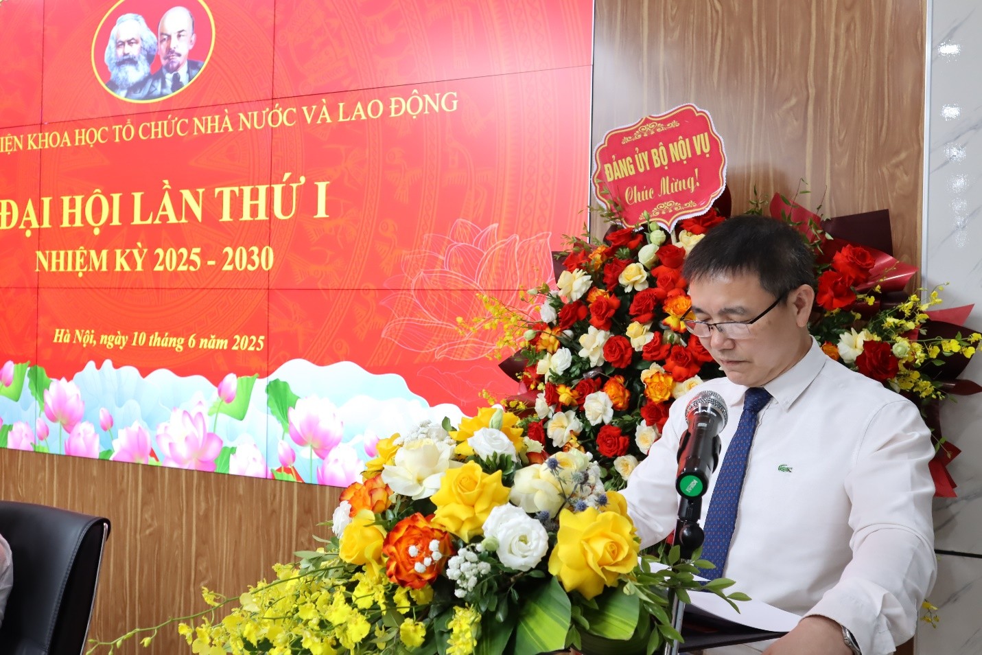Sáng ngày 10/6/2025, tại trụ sở Bộ Nội vụ, số 37 Nguyễn Bỉnh Khiêm, Hà Nội, Đảng bộ Viện Khoa học Tổ chức Nhà nước và Lao động (Viện KHTCNN&LĐ) đã tổ chức trọng thể Đại hội lần thứ I, nhiệm kỳ 2025 – 2030. Đồng chí Nguyễn Văn Hồi - Ủy viên Ban Thường vụ Đảng ủy Bộ, Thứ trưởng Bộ Nội vụ đến dự và chỉ đạo Đại hội.