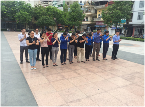 Tham gia đoàn dâng hương có các đồng chí Trần Văn Khánh, Bí thư Đoàn Thanh niên Viện, đồng chí Hồ Trần Sỹ, Ủy viên Ban chấp hành Công đoàn Viện, đồng chí Vũ Hồng Hạnh, Phó Bí thư Đoàn phường Tương Mai và các đoàn viên ưu tú của Đoàn thanh niên Viện Khoa học tổ chức nhà nước.