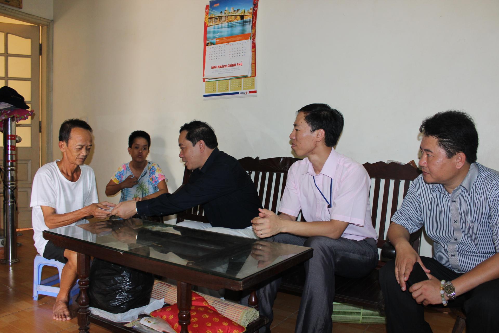 Đồng chí Chu Tuấn Tú, Đảng ủy viên, Chủ tịch Công đoàn tặng quà cho thương binh bị nhiễm chất độc da cam Đặng Văn Đệ