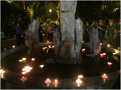 Trong không khí trang nghiêm tại Nhà bia tưởng niệm liệt sĩ, Đoàn dâng hương đã dâng hương, thắp nến tri ân và bày tỏ lòng biết ơn vô hạn, sâu sắc đối với công lao to lớn của các anh hùng liệt sỹ đã hiến trọn tuổi thanh xuân, hy sinh vì độc lập, tự do của Tổ quốc, vì hạnh phúc của nhân dân. Các đoàn viên thanh niên Viện nói riêng và thế hệ trẻ nói chung luôn biết ơn các vị anh hùng, liệt sỹ những người đã làm nên lịch sử cho dân tộc, những người không tiếc thân mình vì Tổ quốc.