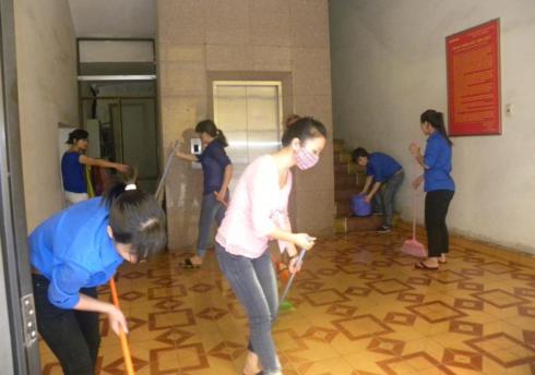 Một số hình ảnh đoàn viên thanh niên tham gia vệ sinh trụ sở làm việc