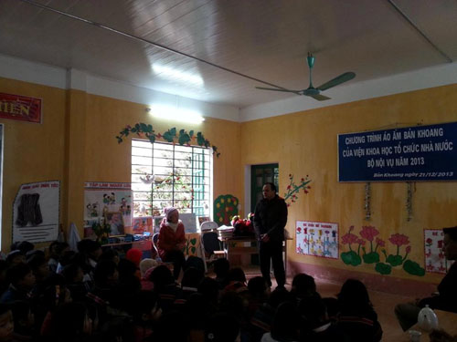 Sau một chuyến hành trình dài trong thời tiết khắc nghiệt và giá lạnh, ngày 21/12/2013, Đoàn Viện Khoa học tổ chức nhà nước đã có mặt tại Trường Tiểu học Bản Khoang, huyện Sapa, tỉnh Lào Cai, nơi đã hứng chịu những thiệt hại nặng nề trong trận lũ quét kinh hoàng đêm ngày 04/9/2013.