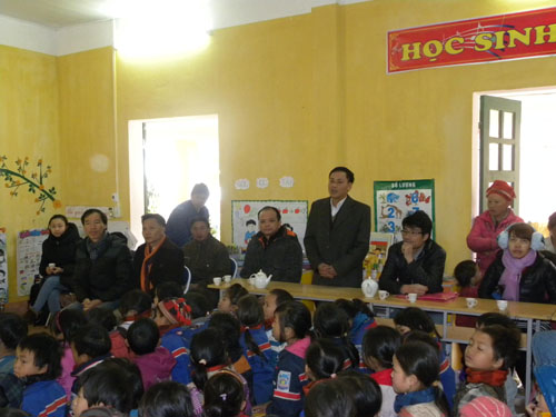Ông Nguyễn Công Hưng, Hiệu trưởng nhà trường đã giới thiệu với Đoàn về Trường Tiểu học Bản Khoang: toàn bộ học sinh trong trường là con em người dân tộc (Mông và Dao). Mặc dù hoàn cảnh khó khăn, thiếu thốn nhưng các em đều cố găng vươn lên trong học tập, hàng năm Trường đều có học giỏi và đạt giải cao trong các kỳ thi toán, văn của huyện và tỉnh. Nhà trường có 27 thầy cô giáo và 203 em học sinh. Trường Tiểu học Bản Khoang gồm nhiều điểm trường, trong đó điểm trường chính tại xã Bản Khoang, huyện Sapa, tỉnh Lào Cai. Ngày 4/9/2013, trường bị lũ ống quét gây thiệt thại nặng nề về người và tài sản, hiện nay nhà trường đang trong quá trình sửa chữa, xây dựng lại các lớp học nên rất cần sự ủng hộ, hỗ trợ của các tổ chức, cá nhân có lòng hảo tâm.