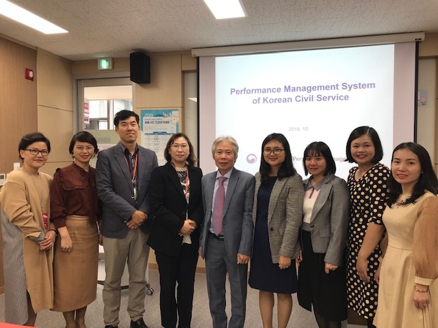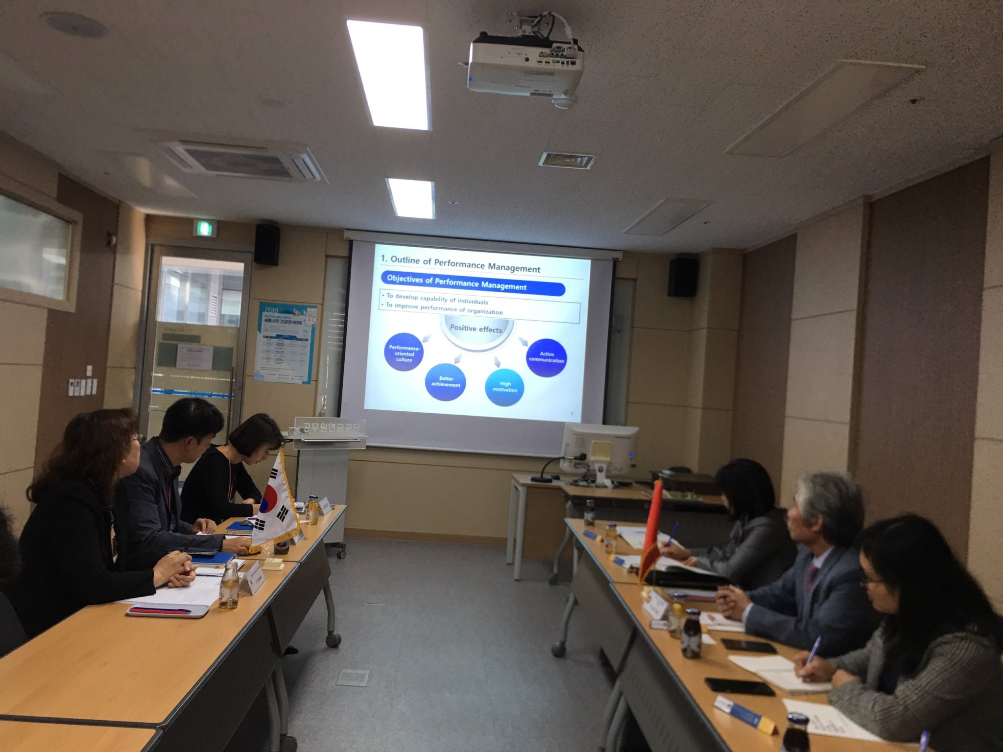 Trong chương trình nghiên cứu, khảo sát tại Hàn Quốc, Đoàn cũng đã làm việc với Bộ Nhân sự Hàn Quốc (Ministry of Personnel Management) để học hỏi kinh nghiệm trong việc đánh giá thành tích của công chức nhà nước Hàn Quốc. Tham dự buổi tọa đàm, về phía Bộ Nhân sự Hàn Quốc có bà Jeon jisook, trưởng phòng Hợp tác Quốc tế cùng một số chuyên gia, công chức của Bộ. Tại buổi làm việc, chuyên gia của Bộ Nhân sự Hàn Quốc đã chia sẻ rất chi tiết về hệ thống thành tích của công chức Hàn Quốc, về quy trình đánh giá, mục đích đánh giá, đặc biệt là việc phân loại đánh giá đối với công chức cấp cao và đánh giá đối với công chức chuyên môn, nghiệp vụ.