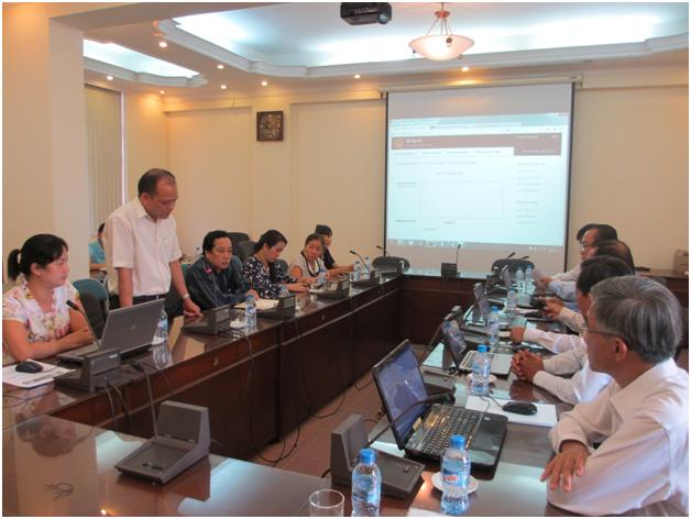 Tại buổi làm việc, các viên chức thuộc Trung tâm Thông tin và Thư viện, Viện KHTCNN đã giới thiệu với Đoàn công tác và demo việc sử dụng phần mềm trong việc tổ chức thi tuyển công chức trên máy tính. Các thành viên trong Đoàn công tác đã trực tiếp thử nghiệm sử dụng phần mềm và bày tỏ sự quan tâm tới khả năng ứng dụng phần mềm này vào việc tổ chức thi tuyển công chức tại thành phố Hồ Chí Minh. Trao đổi với Viện về một số vấn đề trong thực tiễn công tác tuyển dụng công chức của thành phố Hồ Chí Minh, Đoàn công tác cho biết các kỳ thi tuyển công chức của thành phố Hồ Chí Minh hàng năm đều có số lượng thí sinh dự thi rất lớn, do đó việc tổ chức thi tuyển, chấm thi… chiếm rất nhiều thời gian và nguồn lực của thành phố. Nhằm nâng cao hiệu quả của công tác tuyển dụng công chức, một trong số các giải pháp mà thành phố quan tâm đó là đổi mới phương thức tổ chức thi tuyển. Các thành viên trong Đoàn cũng nêu ra nhiều vấn đề nếu triển khai ứng dụng phần mềm của Viện vào thực tiễn tổ chức thi tuyển công chức tại thành phố Hồ Chí Minh và đã được ông Chu Tuấn Tú – Giám đốc Trung tâm Thông tin và Thư viện giải đáp những thắc mắc và trình bày một số phương án và cách thức xử lý các vấn đề mà Đoàn công tác nêu ra.