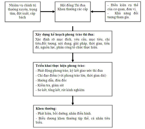 Từ những nghiên cứu lý luận và đúc rút từ thực tiễn, có thể hình thành quy trình tổ chức phong trào thi đua qua sơ đồ dưới đây: