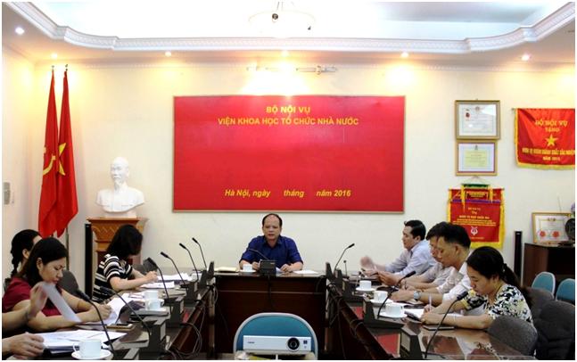 Ngày 29/4/2016, Viện Khoa học tổ chức nhà nước đã tổ chức cuộc họp lấy ý kiến góp ý cho Danh mục nhiệm vụ Khoa học và Công nghệ (KH&CN) đăng ký thực hiện năm 2017 của Bộ Nội vụ. TS. Trần Văn Ngợi, Viện trưởng Viện Khoa học tổ chức nhà nước chủ trì cuộc họp. Tham dự cuộc họp có lãnh đạo viện, lãnh đạo các phòng, trung tâm thuộc viện.