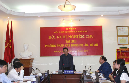 Ngày 06/4/2016, tại trụ sở Viện Khoa học tổ chức nhà nước, đã tổ chức họp đánh giá nghiệm thu “Tài liệu bồi dưỡng phương pháp xây dựng dự án, đề án” (Tài liệu) do TS. Trần Văn Ngợi, Viện trưởng Viện Khoa học tổ chức nhà nước cùng nhóm nghiên cứu thực hiện.