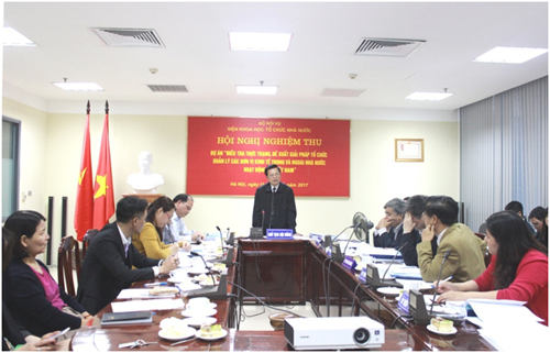 Ngày 17/3/2017, tại trụ sở Bộ Nội vụ, Viện Khoa học tổ chức nhà nước (Viện KHTCNN) đã tổ chức Hội nghị nghiệm thu Dự án: “Điều tra thực trạng, đề xuất giải pháp tổ chức quản lý các đơn vị kinh tế trong và ngoài nhà nước hoạt động tại Việt Nam” (Dự án) do Viện KHTCNN chủ nhiệm.