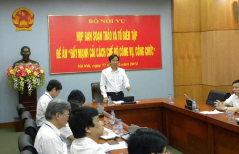 Tại cuộc họp, Phó Viện trưởng Viện khoa học tổ chức nhà nước Vũ Thị Hiền đã công bố các quyết định của Bộ trưởng Bộ Nội vụ về việc thành lập Ban soạn thảo và Tổ biên tập đề án “Đẩy mạnh cải cách chế độ công vụ, công chức”. Cũng tại cuộc họp, Phó Viện trưởng Viện Khoa học tổ chức nhà nước Trần Văn Ngợi đã trình bày tóm tắt dự thảo Đề án “Đẩy mạnh cải cách chế độ công vụ, công chức” với mục tiêu xây dựng một nền công vụ năng động, trách nhiệm, thực tài, văn hóa, chuyên nghiệp và hiện đại với đội ngũ cán bộ, công chức chuyên nghiệp, có đủ phẩm chất, trình độ, năng lực đáp ứng yêu cầu nâng cao hiệu lực, hiệu quả quản lý nhà nước, đáp ứng yêu cầu phát triển kinh tế - xã hội trong điều kiện công nghiệp hóa, hiện đại hóa và hội nhập quốc tế tầm nhìn đến năm 2020. Đề án cũng xác định rõ 12 nhiệm vụ trọng tâm cần triển khai thực hiện, gồm: Tiếp tục hoàn thiện hệ thống thể chế về công vụ, công chức; xác định vị trí việc làm, cơ cấu công chức, viên chức trong các cơ quan Đảng, Nhà nước và tổ chức chính trị - xã hội; xây dựng hệ thống chức danh, tiêu chuẩn công chức; đổi mới và nâng cao chất lượng thi tuyển và thi nâng ngạch đối với công chức; xây dựng cơ sở dữ liệu của đội ngũ công chức; ứng dụng công nghệ thông tin vào thi tuyển, thi nâng ngạch, báo cáo thống kê, duy trì cơ sở dữ liệu của đội ngũ công chức; đổi mới phương thức tuyển chọn và quy định chế độ thực tập, tập sự lãnh đạo; đào tạo, bồi dưỡng thường xuyên đối với đội ngũ công chức; ban hành và thực hiện chính sách thu hút, phát hiện, trọng dụng và đãi ngộ người có tài năng, chế độ tiến cử người có tài năng trong hoạt động công vụ; rà soát và giải quyết chế độ thôi việc, đưa ra khỏi nền công vụ nhưng công chức không đạt tiêu chuẩn, không hoàn thành nhiệm vụ; quy định chế độ từ chức và văn hóa từ chức đối với công chức, viên chức lãnh đạo quản lý và tiếp tục thực hiện chính sách tinh giản biên chế.