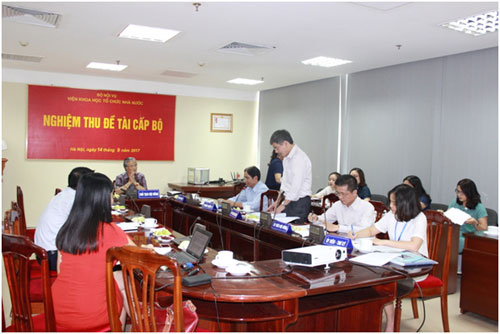 Ngày 14/9/2017, Viện Khoa học tổ chức nhà nước đã tổ chức nghiệm thu Đề tài khoa học cấp Bộ: “Về kiểm soát quyền lực nhà nước của cơ quan hành pháp với cơ quan lập pháp và cơ quan tư pháp ở nước ta” (Đề tài) do PGS.TS Nguyễn Thị Thu Hà, Phó Trưởng Khoa Lý luận cơ sở, Học viện Hành chính Quốc gia làm Chủ nhiệm.