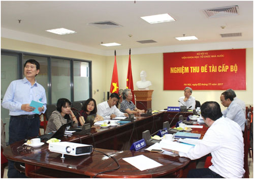 Ngày 02/11/2017, Viện Khoa học tổ chức nhà nước đã tổ chức buổi nghiệm thu Đề tài khoa học cấp Bộ: “Xây dựng khung đánh giá các cơ quan chuyên môn của Ủy ban nhân dân cấp tỉnh trong điều kiện cải cách hành chính ở nước ta hiện nay” (Đề tài) do PGS.TS Ngô Thành Can, Phó Trưởng Khoa Tổ chức và Quản lý nhân sự, Học viện Hành chính Quốc gia làm Chủ nhiệm.