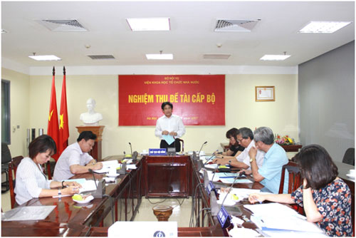 Ngày 03/8/2017, Viện Khoa học tổ chức nhà nước đã tổ chức buổi nghiệm thu Đề tài khoa học cấp Bộ: “Các giải pháp nâng cao năng lực cán bộ, công chức cấp xã khu vực Đồng bằng sông Cửu Long” (Đề tài) do Ths. Trương Cộng Hòa, Giám đốc cơ sở Trường Đại học Nội vụ Hà Nội tại TP. Hồ Chí Minh làm Chủ nhiệm.