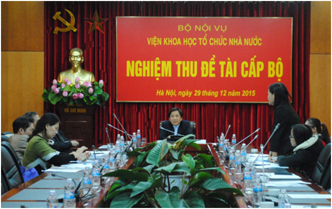 Hội đồng nghiệm thu gồm 06 thành viên do TS. Trần Anh Tuấn, Thứ trưởng Bộ Nội vụ làm Chủ tịch. Tham dự buổi nghiệm thu còn có đại diện công chức, viên chức của các đơn vị: Vụ Tổ chức - Biên chế, Văn phòng Bộ, Tạp chí Tổ chức nhà nước, Trường Đào tạo, bồi dưỡng cán bộ, công chức,…