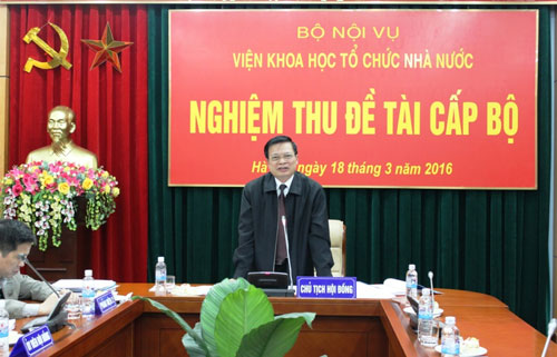 Ngày 18/3/2016, Bộ Nội vụ đã tổ chức nghiệm thu đề tài khoa học cấp Bộ “Cơ sở khoa học xây dựng Luật Tổ chức Chính phủ theo Hiến pháp năm 2013” (Đề tài) do TS. Trần Anh Tuấn, Thứ trưởng Bộ Nội vụ làm Chủ nhiệm.