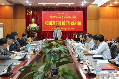 Ngày 25/3/2016, tại trụ sở Bộ Nội vụ, Viện Khoa học tổ chức nhà nước đã tổ chức nghiệm thu đề tài khoa học cấp Bộ “Hoàn thiện mô hình đào tạo của Trường Đại học Nội vụ Hà Nội đến năm 2020" (Đề tài) do TS. Tạ Quang Tuấn, Phó Hiệu trưởng Trường Đào tạo, bồi dưỡng cán bộ, công chức làm chủ nhiệm.