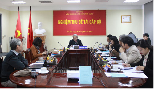 Ngày 15/12/2017, Viện Khoa học tổ chức nhà nước đã tổ chức buổi nghiệm thu chính thức Đề tài nghiên cứu khoa học cấp Bộ: “Nâng cao chất lượng đội ngũ công chức Bộ Nội vụ” do TS. Tạ Ngọc Hải, Phó Viện trưởng Viện Khoa học tổ chức nhà nước làm Chủ nhiệm.