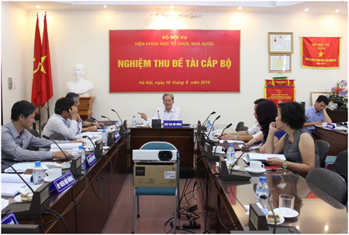 Ngày 18/8/2016, Viện Khoa học tổ chức nhà nước đã tổ chức nghiệm thu Đề tài khoa học cấp Bộ: “Nâng cao hiệu quả thực hiện quy chế dân chủ cơ sở trong các cơ quan hành chính nhà nước” do Ths. Trần Thị Hạnh, Viện trưởng Viện nghiên cứu và Phát triển, Trường Đại học Nội vụ Hà Nội làm Chủ nhiệm. Hội đồng nghiệm thu (Hội đồng) gồm 07 thành viên do TS. Thang Văn Phúc, Nguyên Thứ trưởng Bộ Nội vụ làm Chủ tịch.