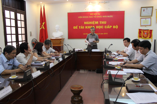 Ngày 26/5/2015, Viện Khoa học tổ chức nhà nước đã tổ chức nghiệm thu Đề tài khoa học cấp Bộ “Nghiên cứu các giải pháp nâng cao hiệu quả hoạt động của các cơ quan hành chính nhà nước” (Đề tài) do ThS. Bùi Văn Minh, Chuyên viên chính Vụ Tổ chức – Biên chế Bộ Nội vụ, làm Chủ nhiệm Đề tài. Hội đồng nghiệm thu (Hội đồng) gồm có 06 thành viên do PGS. TS. Nguyễn Minh Mẫn làm Chủ tịch.