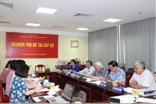 Ngày 17/5/2019, Viện Khoa học tổ chức nhà nước đã tổ chức nghiệm thu Đề tài nghiên cứu khoa học cấp Bộ “Nguồn tài liệu lưu trữ về chủ quyền biển, đảo Việt Nam” do ThS. Nguyễn Thu Hoài, Phó Giám đốc Trung tâm Lưu trữ Quốc gia I, Cục Văn thư và Lưu trữ nhà nước làm chủ nhiệm.