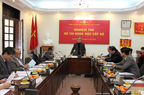 Ngày 16/01/2015, Viện Khoa học tổ chức nhà nước đã tổ chức nghiệm thu chính thức đề tài khoa học cấp Bộ “Phương pháp tổ chức phong trào thi đua đạt hiệu quả cao trong giai đoạn hiện nay” (Đề tài) do TS. Phạm Huy Giang, Vụ trưởng Vụ III, Ban Thi đua Khen thưởng Trung ương, Bộ Nội vụ làm chủ nhiệm đề tài. Hội đồng nghiệm thu (Hội đồng) gồm có 07 thành viên do PGS. TS. Nguyễn Minh Mẫn làm Chủ tịch.