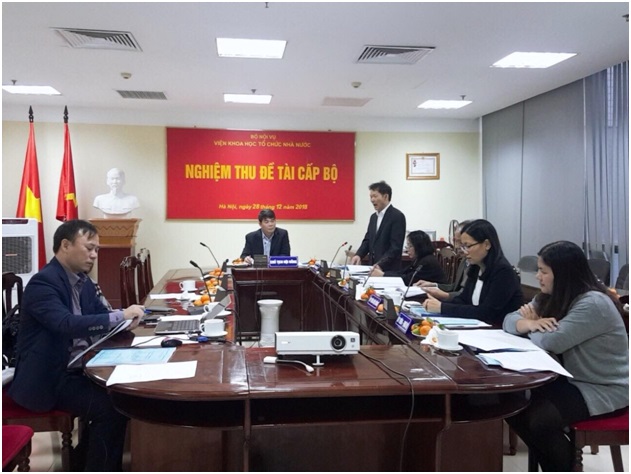 Ngày 28/12/2018, Viện Khoa học tổ chức nhà nước đã tổ chức nghiệm thu chính thức Đề tài nghiên cứu khoa học cấp Bộ: “Xây dựng hệ thống tiêu chuẩn kiểm định chất lượng các cơ sở đào tạo, bồi dưỡng cán bộ, công chức tại Bộ, ngành” do TS. Tạ Quang Tuấn, Phó Tổng Biên tập Tạp chí Quản lý nhà nước, Học viện Hành chính Quốc gia, Bộ Nội vụ làm chủ nhiệm.