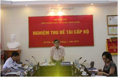 Ngày 16/5/2016, Viện Khoa học tổ chức nhà nước tổ chức nghiệm thu Đề tài nghiên cứu khoa học cấp Bộ: "Xây dựng mô hình đào tạo sau đại học ở Trường Đại học Nội vụ Hà Nội đến năm 2020" do TS. Vũ Ngọc Hoa, Phó Trưởng phòng Phòng Quản lý đào tạo, Trường Đại học Nội vụ Hà Nội làm chủ nhiệm. PGS. TS. Lưu Kiếm Thanh - Phó Giám đốc Học viện Hành chính Quốc gia là Chủ tịch Hội đồng nghiệm thu (Hội đồng)