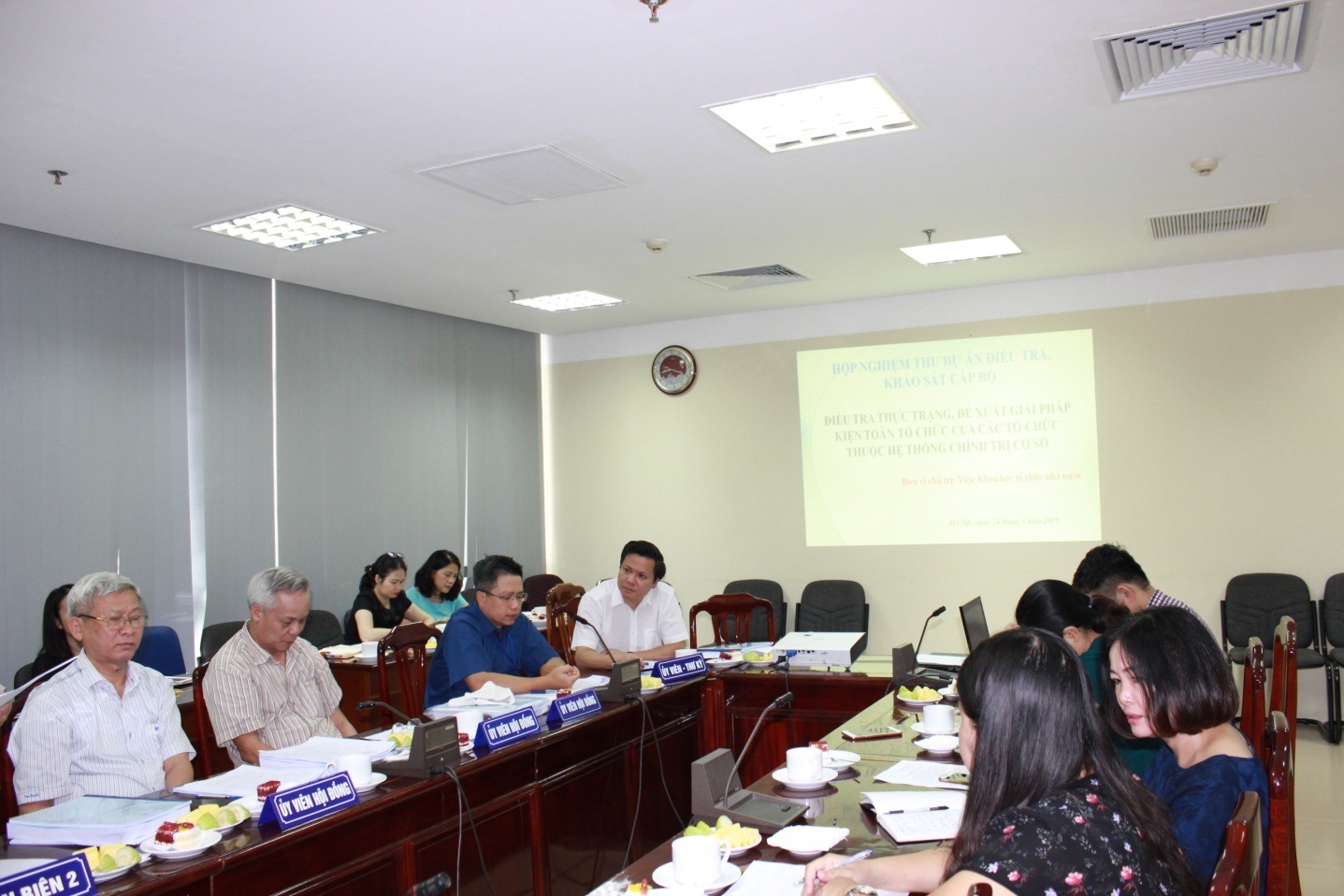 Ngày 24/05/2019, tại trụ sở Bộ Nội vụ, Viện Khoa học tổ chức nhà nước đã tổ chức nghiệm thu Dự án: “Điều tra thực trạng, đề xuất giải pháp kiện toàn tổ chức của các tổ chức thuộc hệ thống chính trị cơ sở” (Dự án) do Viện Khoa học tổ chức nhà nước làm đơn vị chủ trì.