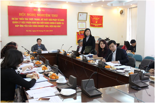 Ngày 04/1/2016, tại trụ sở Viện Khoa học tổ chức nhà nước, Hội đồng nghiệm thu Dự án đã họp đánh giá nghiệm thu kết quả Dự án “Điều tra thực trạng, đề xuất giải pháp tổ chức quản lý việc phân vạch địa giới hành chính ở nước ta đáp ứng yêu cầu công nghiệp hoá, hiện đại hoá" do PGS.TS. Triệu Văn Cường, Thứ trưởng Bộ Nội vụ cùng nhóm nghiên cứu Trường Đại học Nội vụ Hà Nội thực hiện.