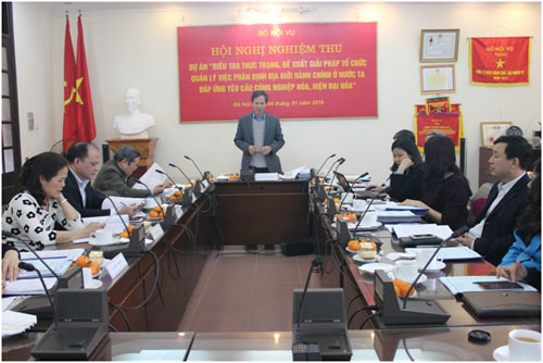 Hội đồng nghiệm thu Dự án gồm 7 thành viên do TS. Phan Văn Hùng, Vụ trưởng Vụ Chính quyền địa phương, Bộ Nội vụ làm Chủ tịch Hội đồng. Đến dự Hội nghị nghiệm thu có các chuyên gia, nhà khoa học; lãnh đạo một số đơn vị thuộc, trực thuộc Bộ Nội vụ và đại diện các phòng, trung tâm thuộc Viện Khoa học tổ chức nhà nước.
