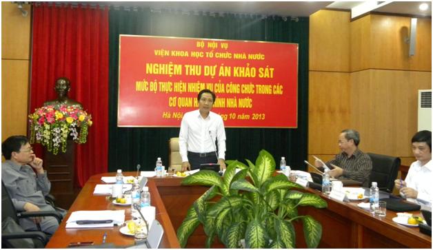 Chiều ngày 29/10/2013, tại Trụ sở Bộ Nội vụ, Viện Khoa học tổ chức nhà nước đã tổ chức buổi nghiệm thu Dự án khảo sát mức độ thực hiện nhiệm vụ của công chức trong các cơ quan hành chính nhà nước (Dự án).