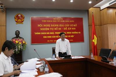 Ngày 19/9/2011, tại Trụ sở Bộ Nội vụ, Viện Khoa học tổ chức Nhà nước - Bộ Nội vụ tổ chức Hội nghị đánh giá cấp cơ sở nhiệm vụ số 05 - Đề án 928: “Chính sách đãi ngộ, trọng dụng, khen thưởng và tôn vinh các cán bộ khoa học xã hội” (Đề tài).
