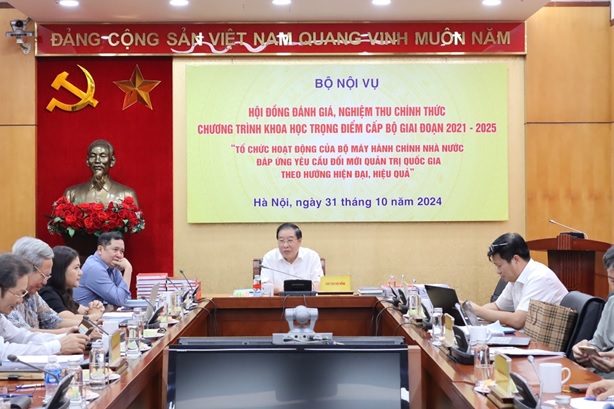 Ngày 31/10/2024, tại trụ sở Bộ Nội vụ, Viện Khoa học tổ chức nhà nước đã tổ chức nghiệm thu chính thức Chương trình khoa học trọng điểm cấp Bộ “Tổ chức hoạt động của bộ máy hành chính nhà nước đáp ứng yêu cầu đổi mới quản trị quốc gia theo hướng hiện đại, hiệu quả” do PGS.TS. Triệu Văn Cường, Thứ trưởng Bộ Nội vụ làm chủ nhiệm.