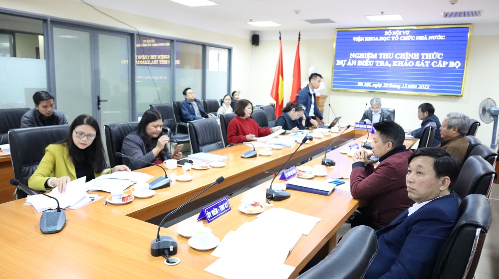 Ngày 28/12/2022, tại trụ sở Bộ Nội vụ, Viện Khoa học tổ chức nhà nước đã tổ chức nghiệm thu chính thức dự án điều tra, khảo sát: "Điều tra thực trạng, đề xuất giải pháp hoàn thiện xác định vị trí việc làm trong các cơ quan hành chính nhà nước" do Viện khoa học tổ chức nhà nước chủ trì.