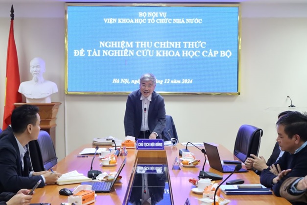 Ngày 16/12/2024, tại trụ sở Bộ Nội vụ, Viện Khoa học tổ chức nhà nước đã tổ chức nghiệm thu chính thức đề tài nghiên cứu khoa học cấp Bộ “Cơ sở khoa học xây dựng khung năng lực số của công chức trong cơ quan hành chính nhà nước” do TS. Đào Mạnh Hoàn, Trưởng phòng Phòng Nghiên cứu quản lý cán bộ, công chức, viên chức, Viện Khoa học tổ chức nhà nước, Bộ Nội vụ làm chủ nhiệm.