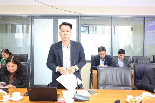 TS. Đào Mạnh Hoàn, Trưởng phòng Phòng Nghiên cứu quản lý cán bộ, công chức, viên chức, Viện Khoa học tổ chức nhà nước thay mặt Nhóm nghiên cứu trình bày tóm tắt kết quả nghiên cứu Đề tài.