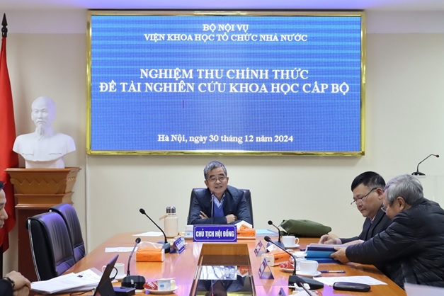 Ngày 30/12/2024, tại trụ sở Bộ Nội vụ, Viện Khoa học tổ chức nhà nước đã tổ chức nghiệm thu chính thức đề tài nghiên cứu khoa học cấp Bộ “Đánh giá hoạt động cung ứng dịch vụ hành chính công của cơ quan hành chính nhà nước ở Việt Nam” do TS. Nguyễn Mạnh Cường, Phó Vụ trưởng, Vụ Cải cách hành chính, Bộ Nội vụ làm chủ nhiệm.