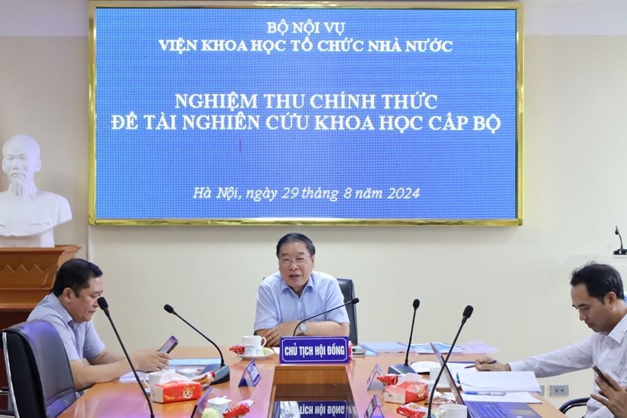Ngày 28/8/2024, tại trụ sở Bộ Nội vụ, Viện Khoa học tổ chức nhà nước đã tổ chức nghiệm thu chính thức đề tài nghiên cứu khoa học cấp Bộ “Hoàn thiện thể chế quản lý vùng đáp ứng yêu cầu quản trị quốc gia hiệu lực, hiệu quả” do TS. Vũ Thị Mỹ Hằng, Giảng viên chính, Khoa Khoa học liên ngành, Học viện Hành chính Quốc gia làm chủ nhiệm.