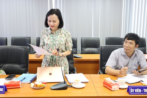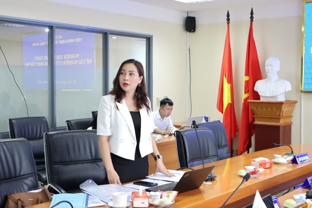 TS. Vũ Thị Mỹ Hằng thay mặt Nhóm nghiên cứu trình bày tóm tắt kết quả nghiên cứu Đề tài.