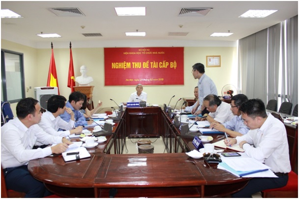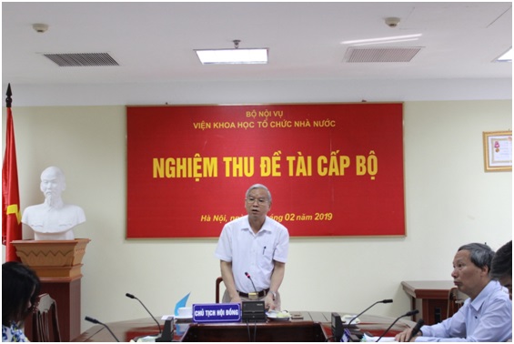 Ngày 21/2/2019, tại trụ sở Bộ Nội vụ, Viện Khoa học tổ chức nhà nước đã tổ chức nghiệm thu Đề tài khoa học cấp Bộ “Các giải pháp nâng cao chất lượng đội ngũ giảng viên tại các cơ sở đào tạo, bồi dưỡng cán bộ, công chức, viên chức đáp ứng yêu cầu đào tạo, bồi dưỡng trong thời kỳ mới” do TS. Nguyễn Ngọc Vân, Viện trưởng Viện Khoa học tổ chức nhà nước (Nguyên Vụ trưởng Vụ Đào tạo, bồi dưỡng cán bộ, công chức, viên chức) làm chủ nhiệm.